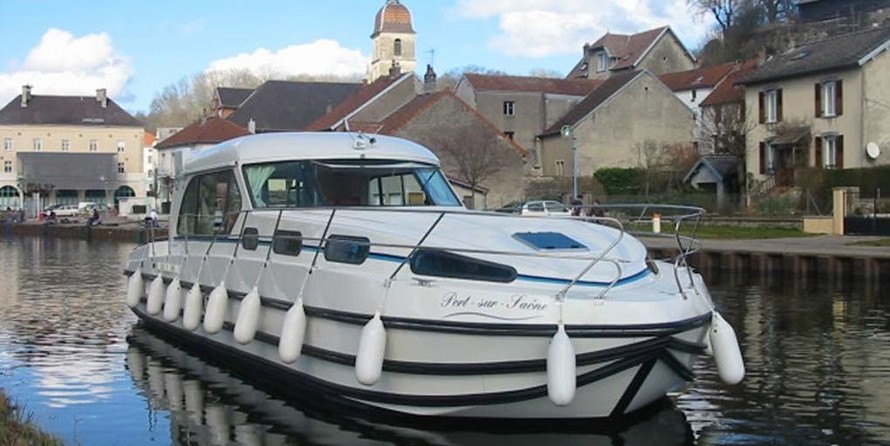 The Nicols Sedan 1310 Les Canalous 99 houseboat was built in 1999, and it is docked in Port de Redon, France.