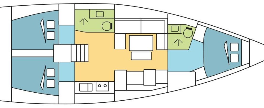 Anaho can accommodate up to 8 people in 3 double cabins and a saloon with 2 extra beds. Pillows and blankets are included in the price.