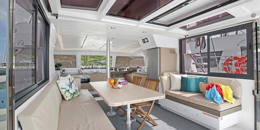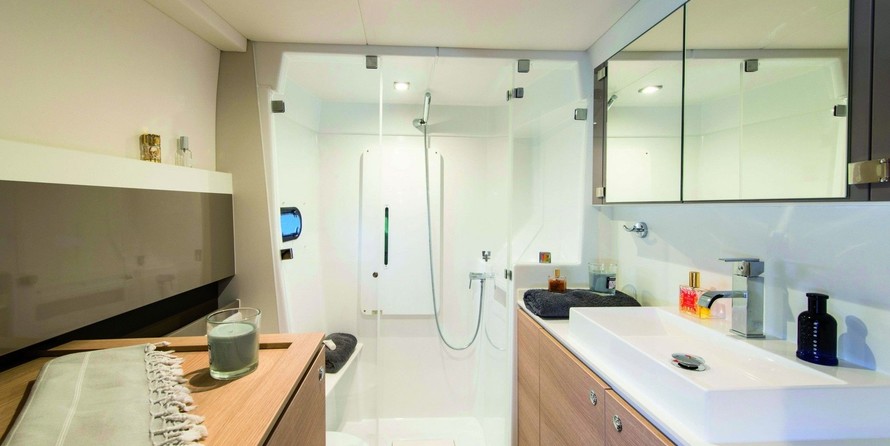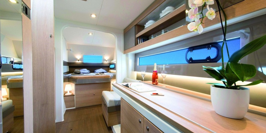 This catamaran is operated by the charter company Dream Yacht Charter.
