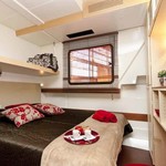 The living area of this houseboat consists of 3 cabins and accommodates 7 people. A shower is at the guests' disposal and there are 3 toilets on board.