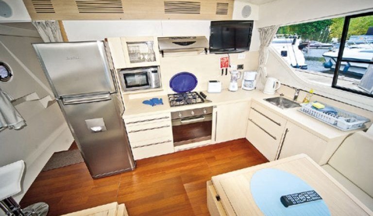 A well-equipped galley with oven, cooker, sink and kitchen utensils is prepared to facilitate cooking. There is also a bbq, microwave and freezer on board.
