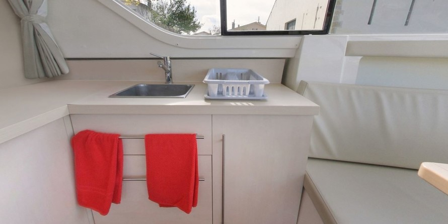 A well-equipped galley with oven, cooker, sink and kitchen utensils is prepared to facilitate cooking. There is also a bbq, microwave and freezer on board.