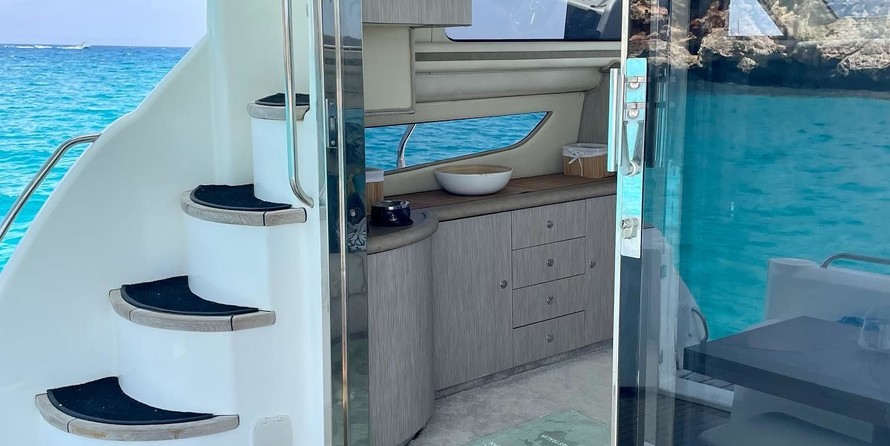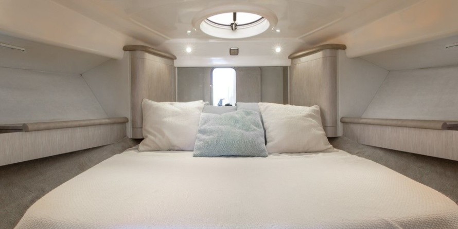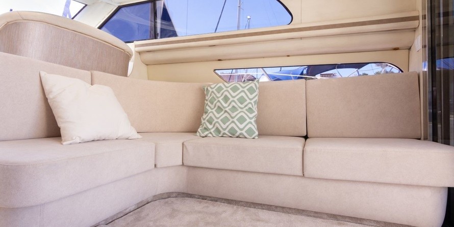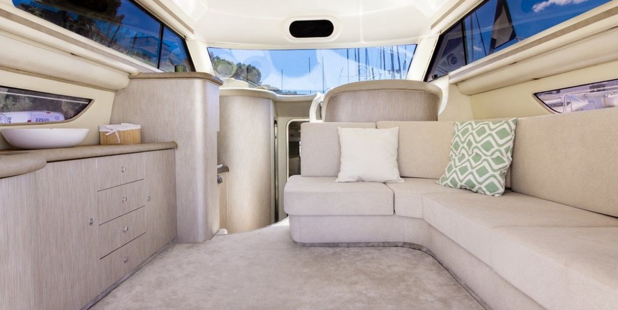 Boat equipment features salon gps plotter, bimini and bow thruster. It also boasts an an audio system, outside speakers, flybridge and inside speakers. The fully-equipped galley includes a microwave, cooker, sink and kitchen utensils.