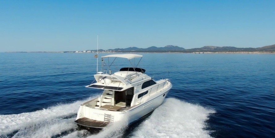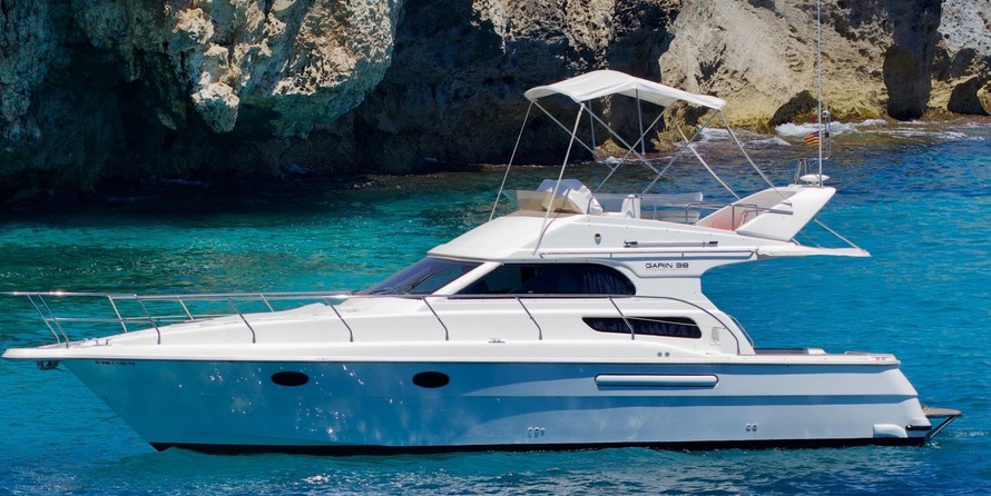2-cabin motor yacht Garin 38 Fly - Titta Bora 4 was built in 2001, (renovated in 2020,) and it is docked in Porto Cristo Marina, Spain.
