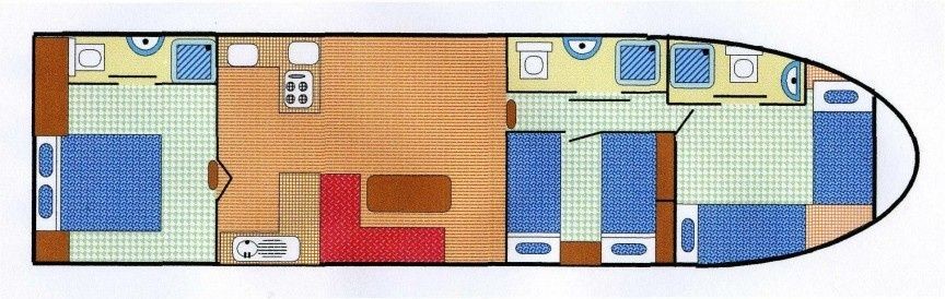 The living area of this houseboat consists of 3 cabins and accommodates 6 people. A shower is at the guests' disposal and there are 3 toilets on board.