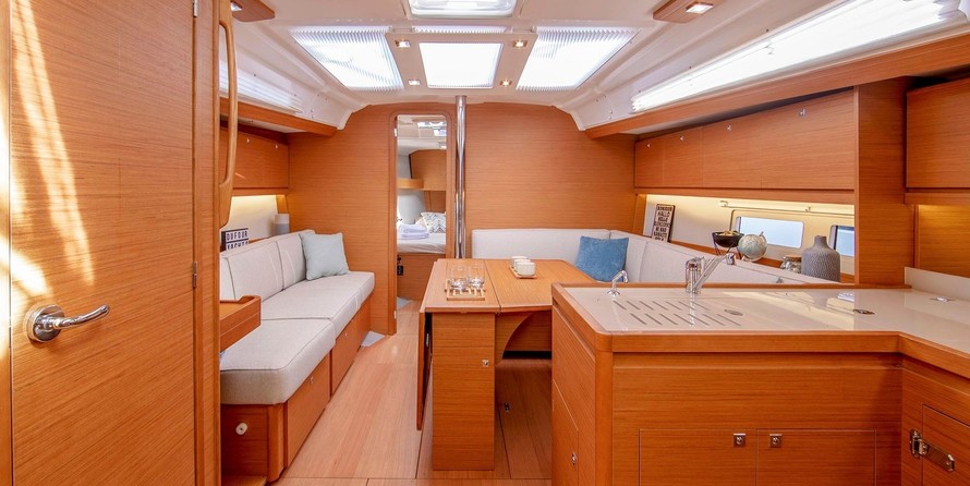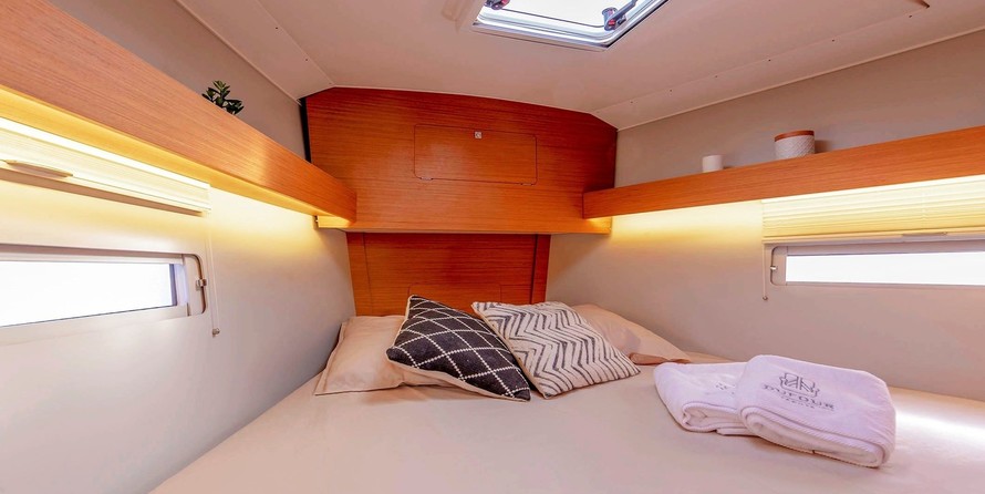 Jelo can accommodate up to 8 people in 3 double cabins and a saloon with 2 extra beds. Pillows and blankets are included in the price.