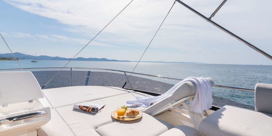 3-cabin motor yacht Prestige 460 Fly - Adudu 2 was built in 2019, and it is docked in D-Marin Marina Borik, Croatia.