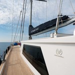 The 41 MT Super Lux Motorsailer Moss is a spectacular, strong, elegant and comfortable performance sailing yacht, having large flexible solar panels on the saloon and spacious deckspace gives her a trendy look and extra power. Moss is ready , willing and able to accomodate a family or friends of 10 guests with unlimited sailing range and capacity . her interior design and colours are unique on a 40 meter size sailing yacht. she is charetering for the first time this year and already became the center of attention… MOSS modern design , performance sailing yacht.