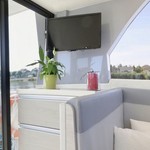 A well-equipped galley with oven, cooker, sink and kitchen utensils is prepared to facilitate cooking. There is also a bbq and microwave on board.