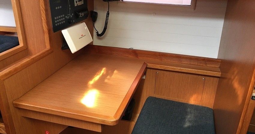 Boat equipment features rolling mainsail, salon gps plotter, bimini and bow thruster. It also boasts an an audio system and outside speakers. The fully-equipped galley includes an oven, cooker, sink and kitchen utensils.