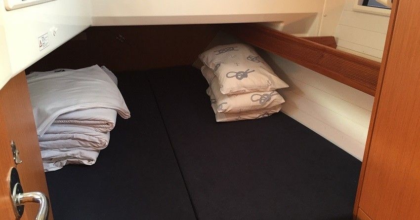 Živa can accommodate up to 8 people in 3 double cabins. Pillows and blankets are included in the price.