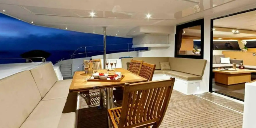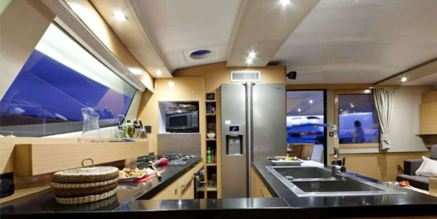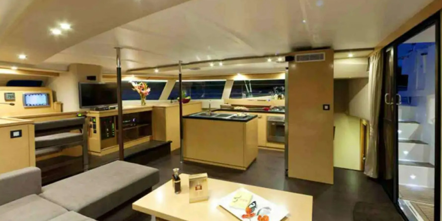 Boat equipment features classical mainsail, generator, bbq, bimini and outside gps plotter. It also boasts a flat screen tv, air conditioning, an audio system, outside speakers and flybridge. The fully-equipped galley includes an ice maker, oven, cooker, sink and kitchen utensils.