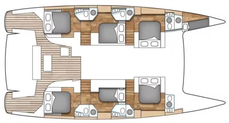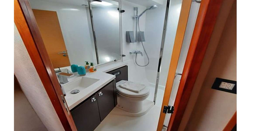 Catamaran Perpetual Blue offers 6 toilets with a shower.