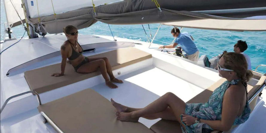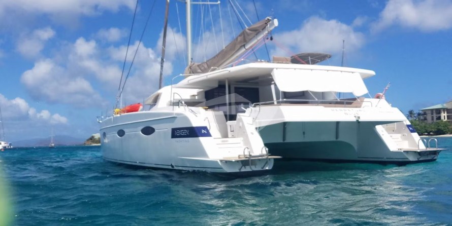 This catamaran is operated by the charter company BVI Yacht Charters.