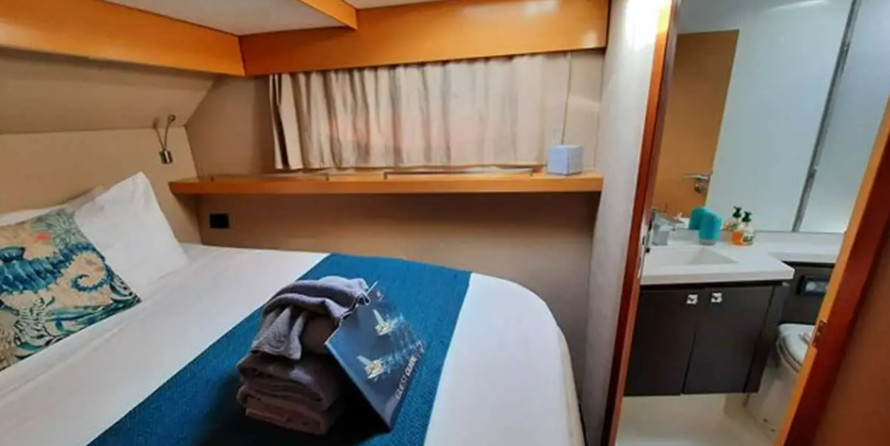 Perpetual Blue can accommodate up to 10 people in 5 double cabins. Pillows and blankets are included in the price.
