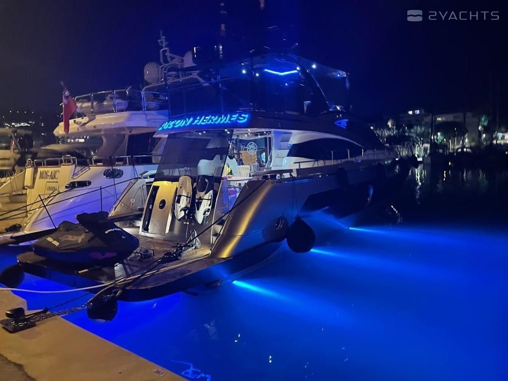3-cabin motor yacht Aicon 64 - Hermes was built in 2020, and it is docked in Port Fréjus, France.