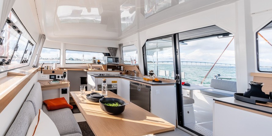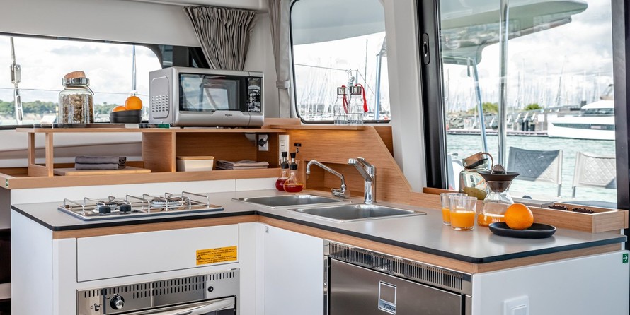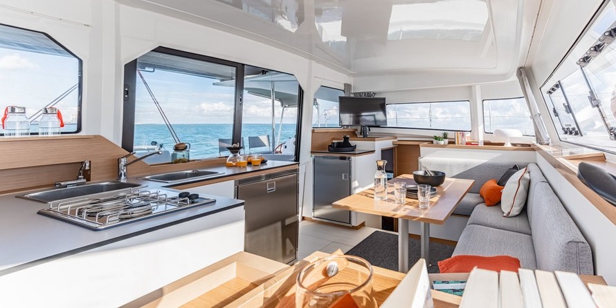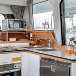Boat equipment features classical mainsail, bimini and outside gps plotter. It also boasts an an audio system, outside speakers and inside speakers. The fully-equipped galley includes an oven, cooker, sink and kitchen utensils.