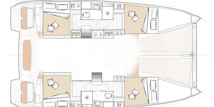 Ad'Oc can accommodate up to 10 people in 2 single cabins and 4 double cabins. Pillows and blankets are included in the price.