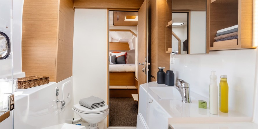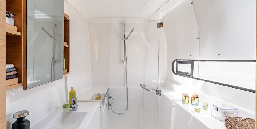 Catamaran Ad'Oc offers 2 toilets with a shower.