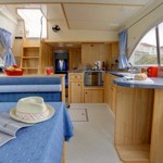 The living area of this houseboat consists of 2 cabins and accommodates 6 people. A shower is at the guests' disposal and there is 1 toilet on board.