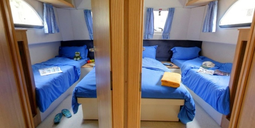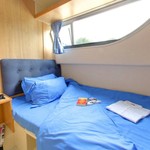 The living area of this houseboat consists of 4 cabins and accommodates 10 people. A shower is at the guests' disposal and there are 2 toilets on board.