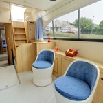 This houseboat is equipped with bow thruster. In chilly weather, guests will benefit from heating. an audio system, flybridge and inside speakers are also available.