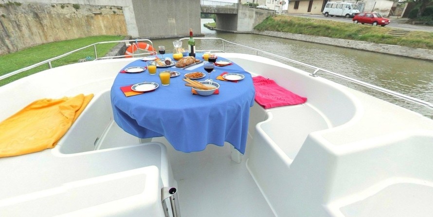 This houseboat is operated by the charter company LeBoat.