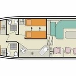 The living area of this houseboat consists of 2 cabins and accommodates 6 people. A shower is at the guests' disposal and there are 2 toilets on board.