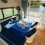 This houseboat is equipped with bathing platform. In chilly weather, guests will benefit from heating. an audio system, flybridge and inside speakers are also available.