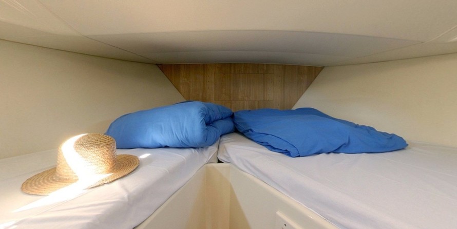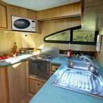 A well-equipped galley with oven, cooker, sink and kitchen utensils is prepared to facilitate cooking. There is also a microwave on board.