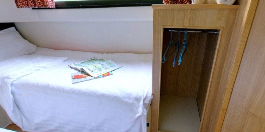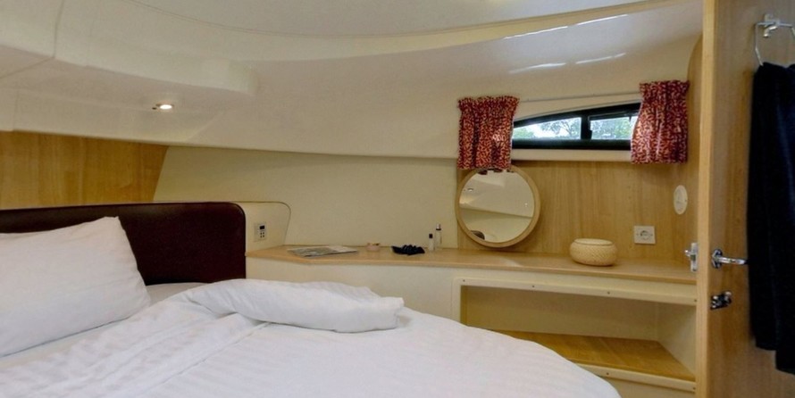 The living area of this houseboat consists of 3 cabins and accommodates 8 people. A shower is at the guests' disposal and there are 3 toilets on board.