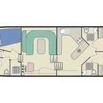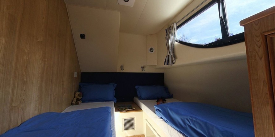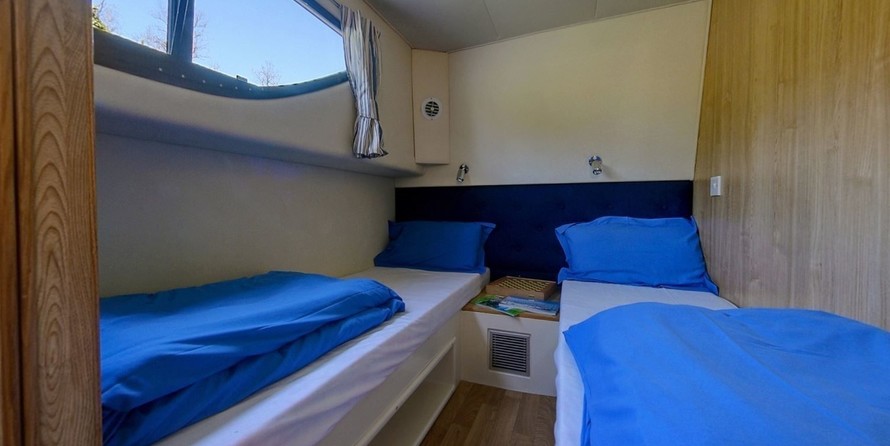 The living area of this houseboat consists of 4 cabins and accommodates 10 people. A shower is at the guests' disposal and there are 3 toilets on board.
