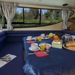 This houseboat is equipped with bow thruster. In chilly weather, guests will benefit from heating. an audio system, dvd player, outside speakers, flybridge and inside speakers are also available.