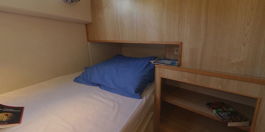 A well-equipped galley with oven, cooker, sink and kitchen utensils is prepared to facilitate cooking. There is also a microwave on board.