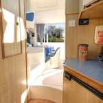 A well-equipped galley with oven, cooker, sink and kitchen utensils is prepared to facilitate cooking. There is also a microwave on board.