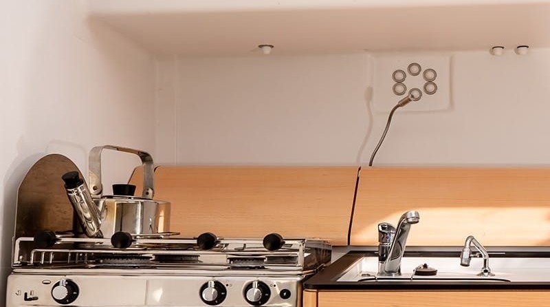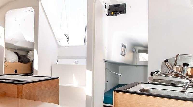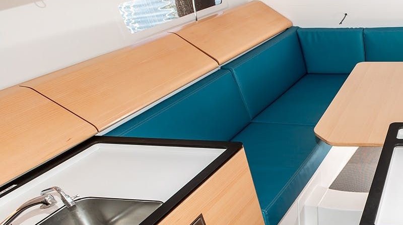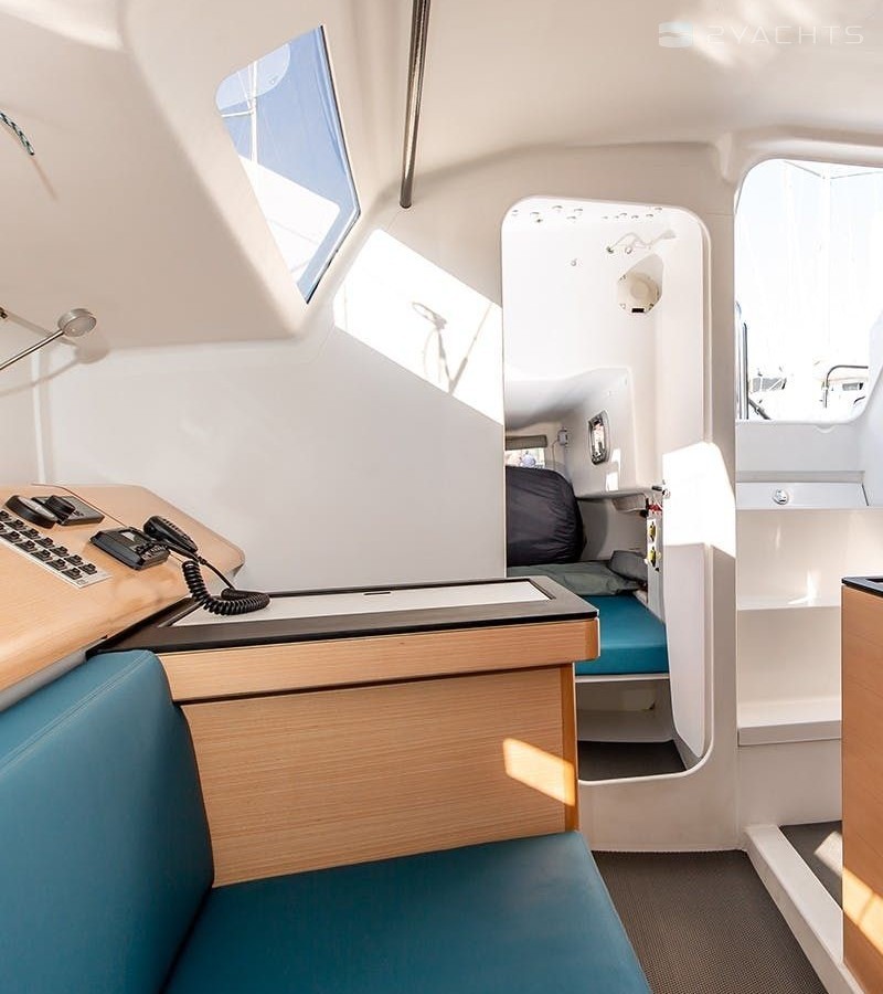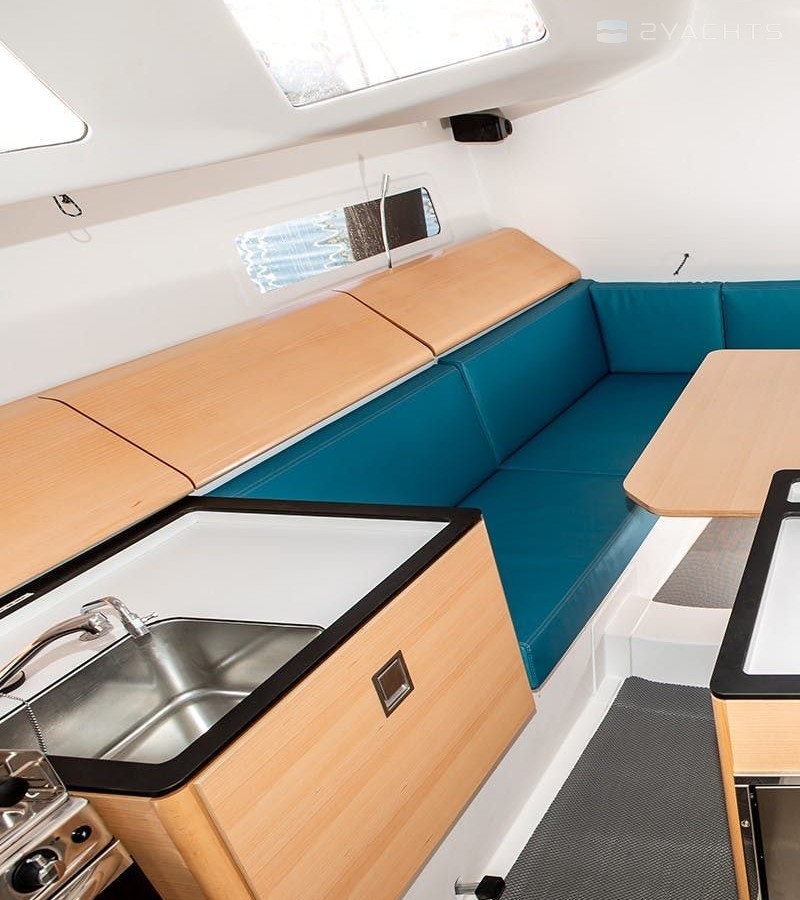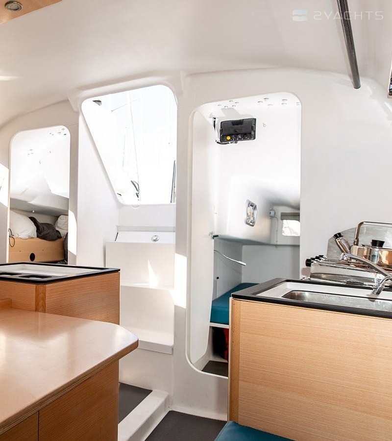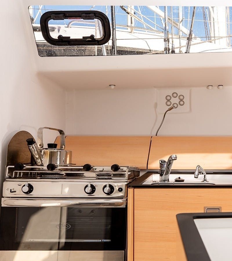 Boat equipment features classical mainsail and outside gps plotter. It also boasts a heating, an audio system, outside speakers and inside speakers. The fully-equipped galley includes an oven, cooker, sink and kitchen utensils.