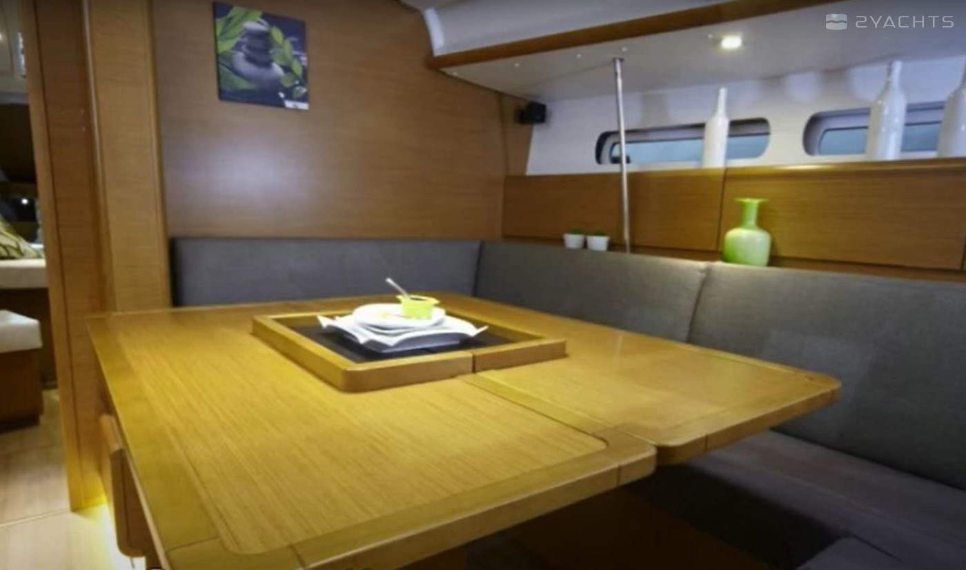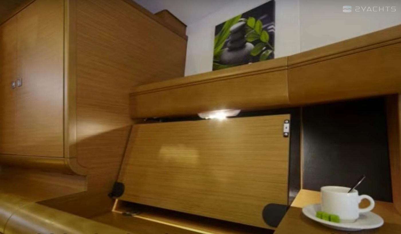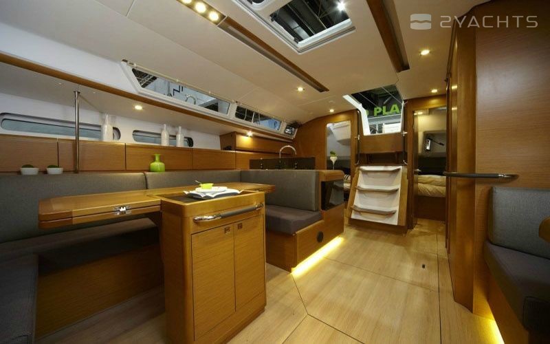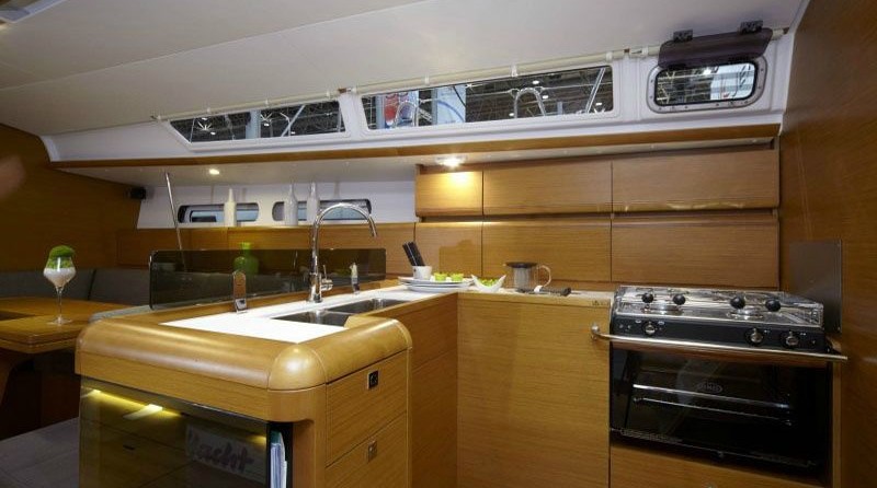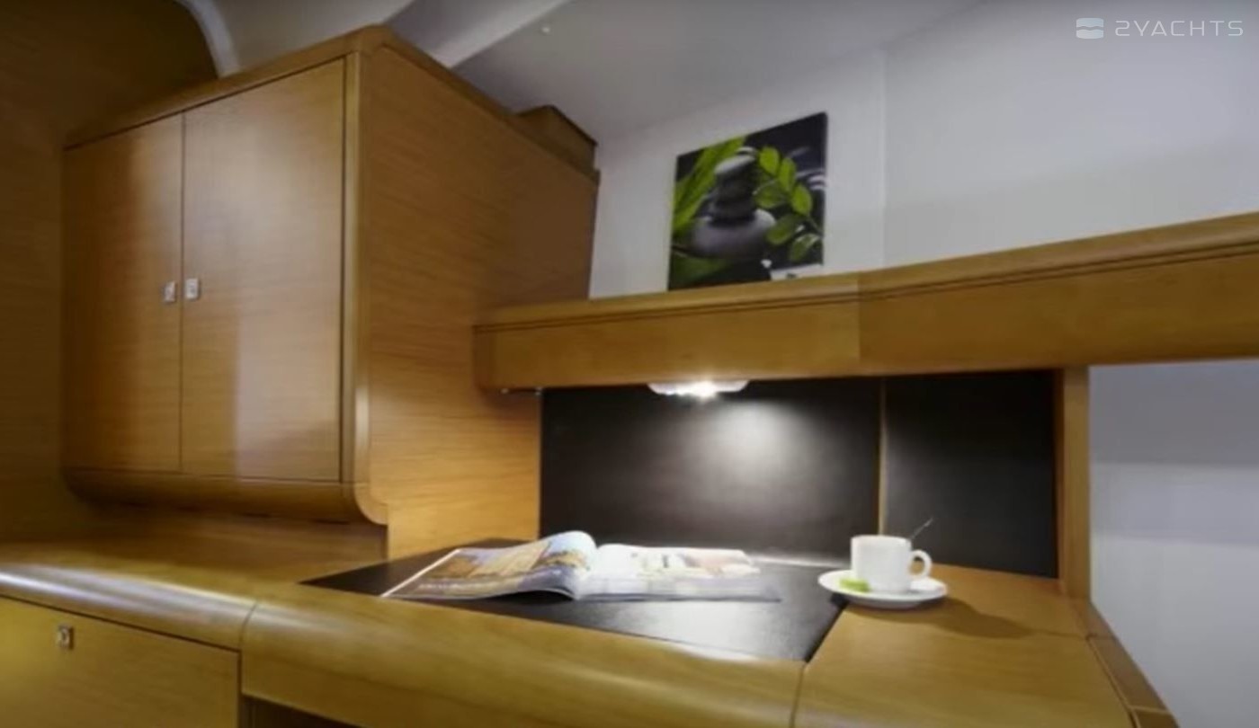 Boat equipment features classical mainsail and bow thruster. It also boasts an an audio system, outside speakers and inside speakers. The fully-equipped galley includes an oven, cooker, sink and kitchen utensils.