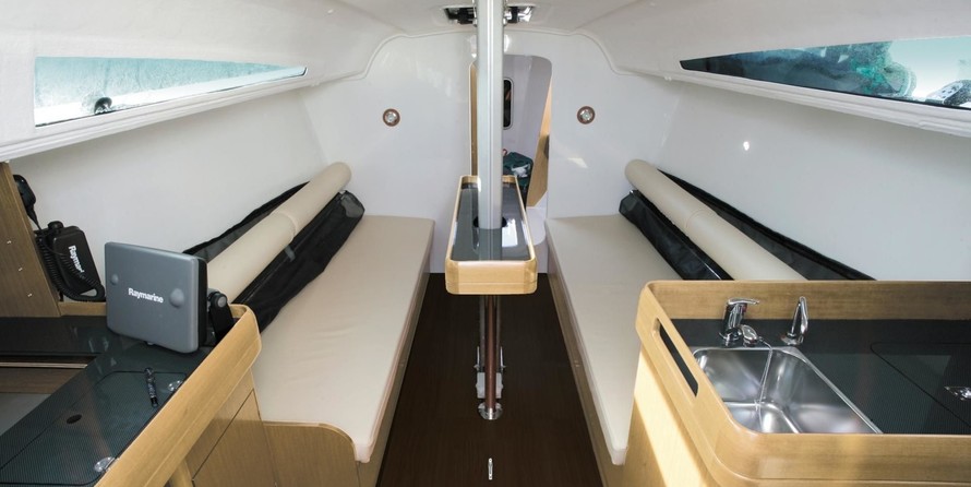 Boat equipment features classical mainsail and salon gps plotter. The fully-equipped galley includes a cooker and sink.