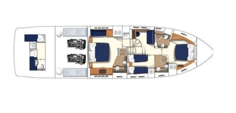 Boat equipment features radar, generator, salon gps plotter, bbq and bimini. It also boasts a flat screen tv, heating, air conditioning, an audio system and outside speakers. The fully-equipped galley includes a microwave, ice maker, coffee machine, oven and cooker.
