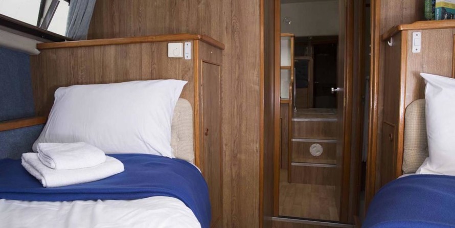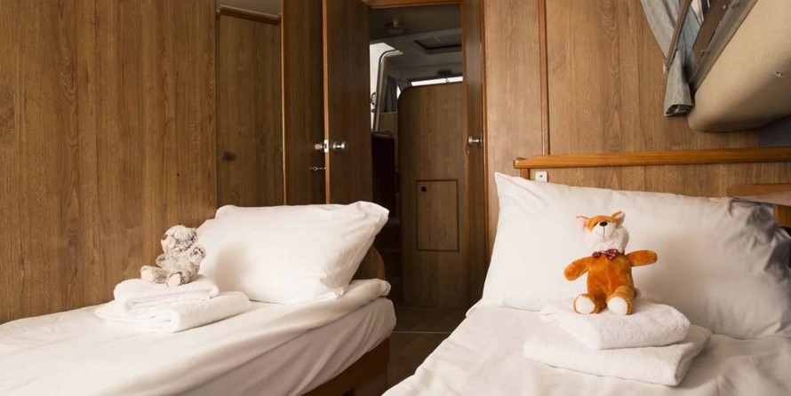 The living area of this houseboat consists of 3 cabins and accommodates 6 people. A shower is at the guests' disposal and there are 3 toilets on board.