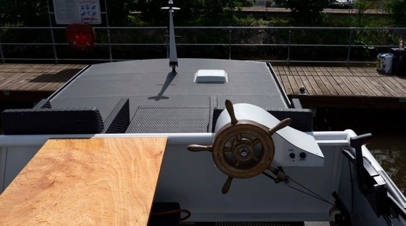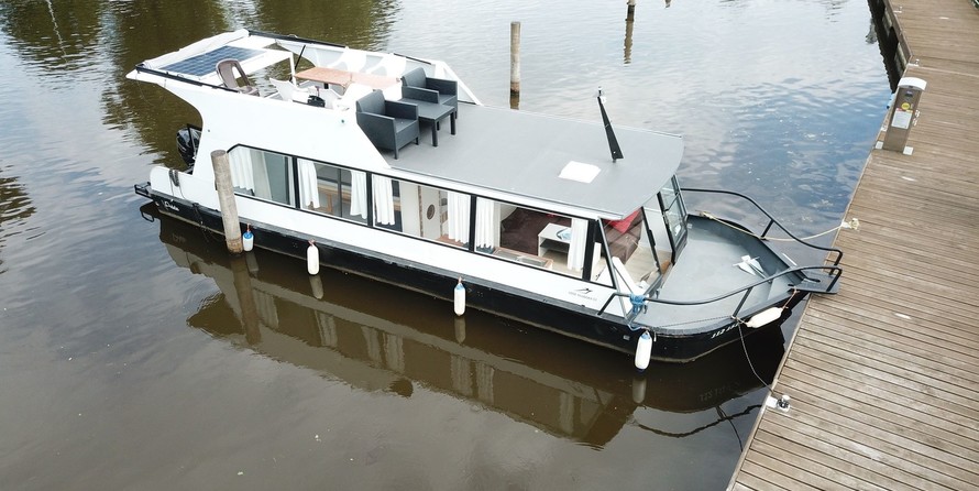 This houseboat is equipped with solar panels and bimini. In chilly weather, guests will benefit from heating. flat screen tv, an audio system, outside speakers, flybridge and inside speakers are also available.