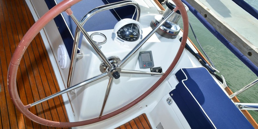 Stainless steel steering wheel 90 cm / 35” with a leather wrap