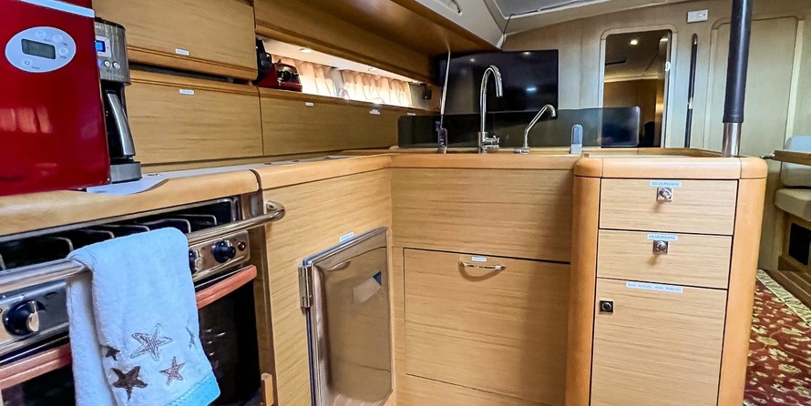PERSEVERANCE was delivered from Jeanneau with almost every factory option. She was built for the European market as a 220V boat. A transformer was installed here in the US. Shore power is 220V/60HZ and the transformer allows 110V/60HZ to the 17 outlets, the generator is set for 220V/60HZ like the A/C units, etc. All to US Marine Standards.