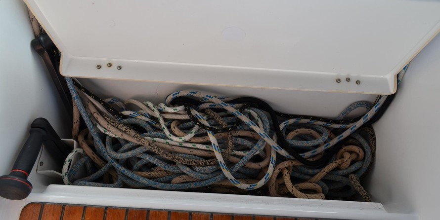ANCHOR LOCKER with access from the deck and location for manual handle and bitter end attachment point