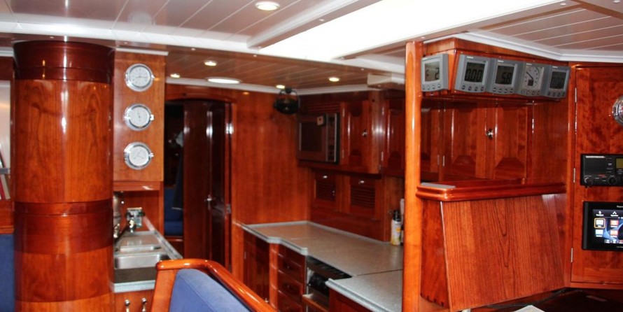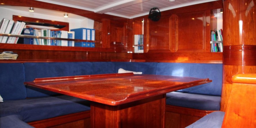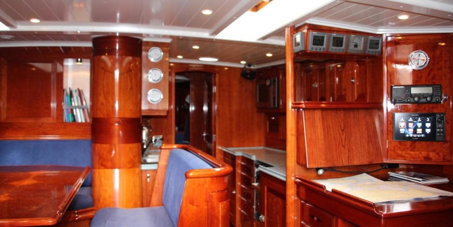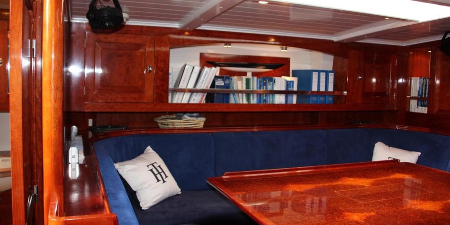 Le voilier peut accueillir 6 personnes dans les cabines et un design extérieur par les Yachts de Conception Georg Nissen.